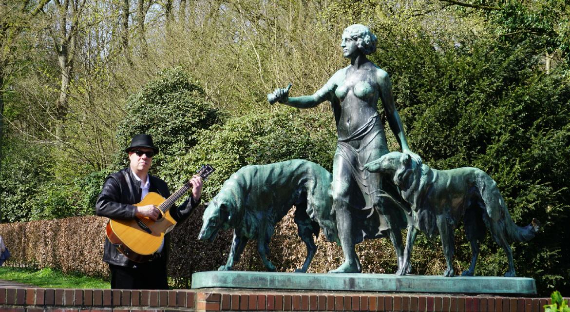 So ist der Titel eines meiner Songs, der das Feeling in diesem wunderbaren Park mitten in Hamburg, in meiner Nachbarschaft beschreibt. Deshalb zieht es mich auch immer wieder hierher. Fast zwangsläufig kommt man mit netten Leuten in Kontakt und klönt ein bisschen oder singt sogar gemeinsam ein Lied. Dieses Mal war Ronald auch wieder dabei und wir haben Fotos geschossen.
